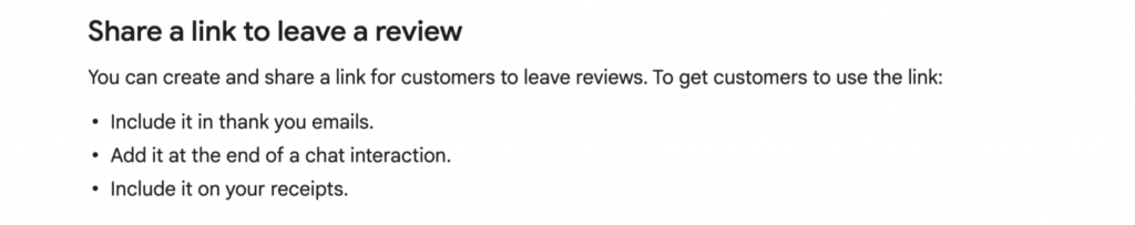 You can also find instructions on how to share a link to leave reviews and where to include it: