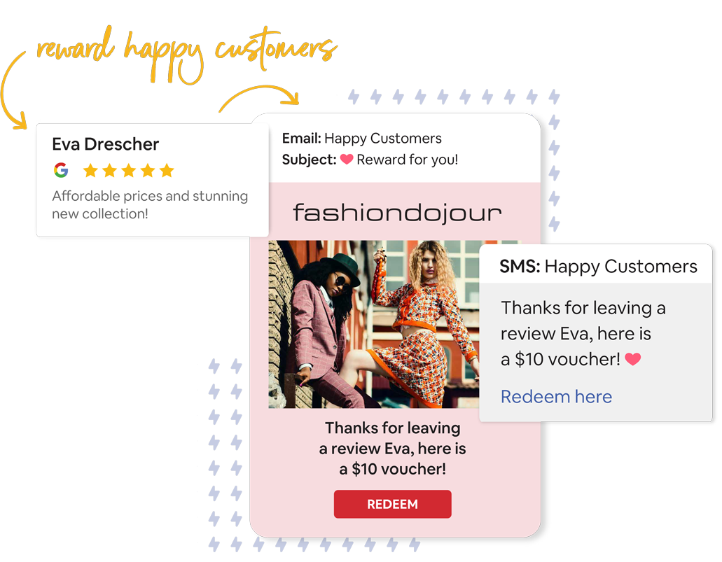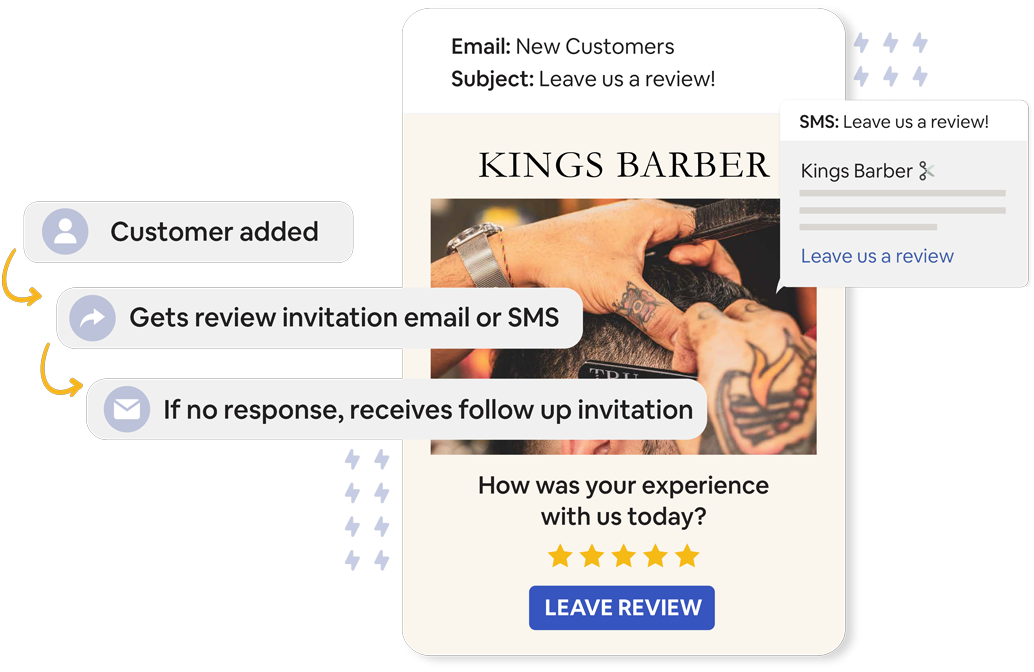 Your customers are sent beautiful custom emails and SMS text messages inviting them to review your business.