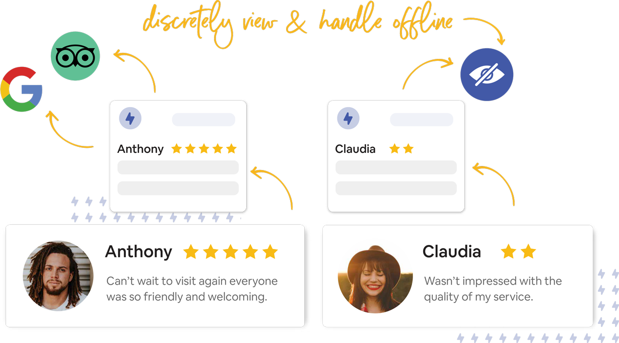 Amazeful captures and sends negative reviews to you privately, allowing you to deal with them offline.