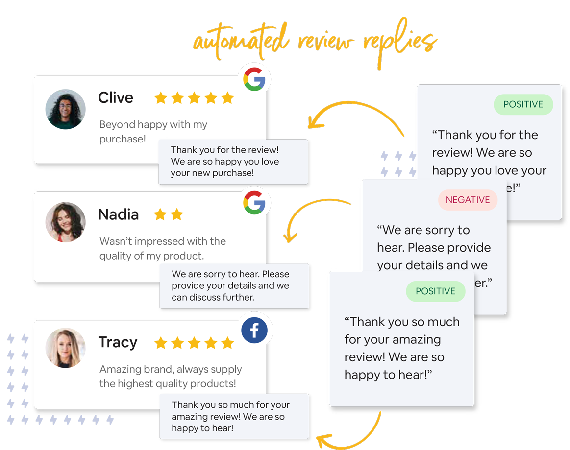 Take the emotion out of replying to reviews and automate the process with our intelligent replying system.