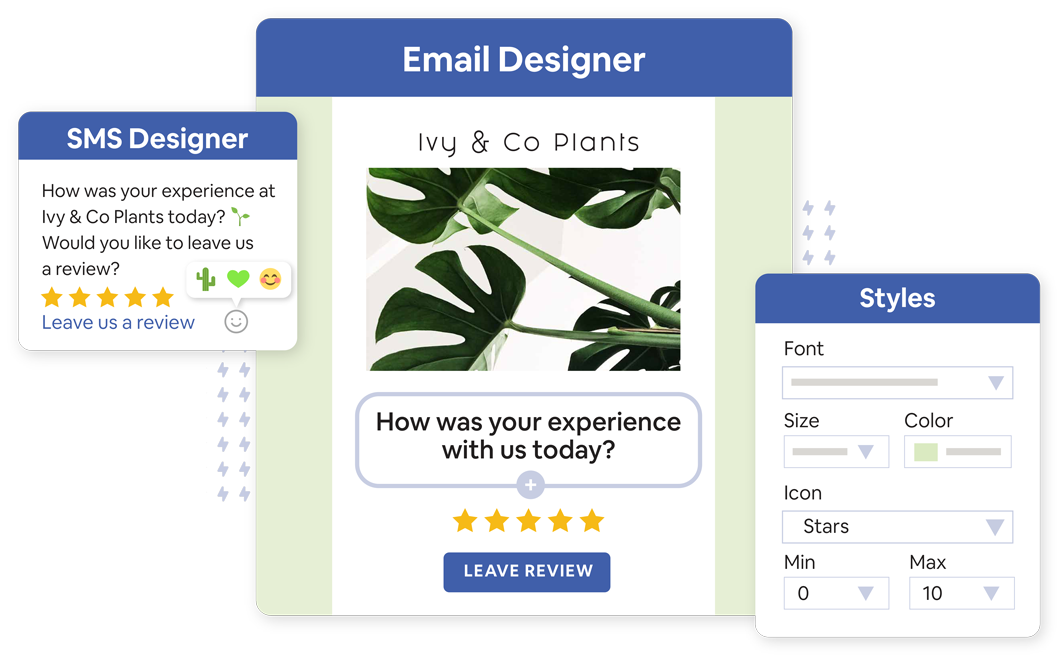 Fully customizable text messages and emails using our template creator allow you to brand all of your review invitations.