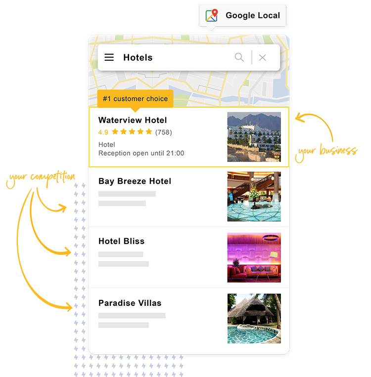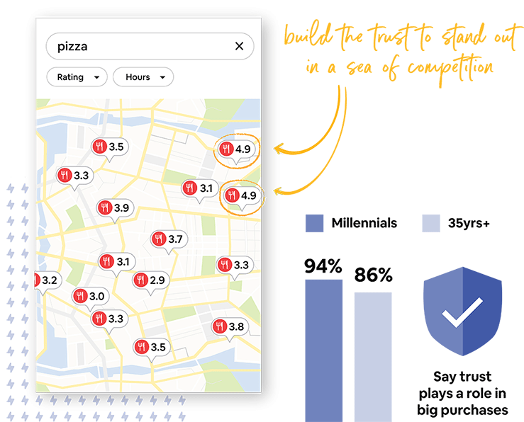 Stand out from your competition by collecting hundreds of reviews. When you’re easy to find, you’re easy to choose.